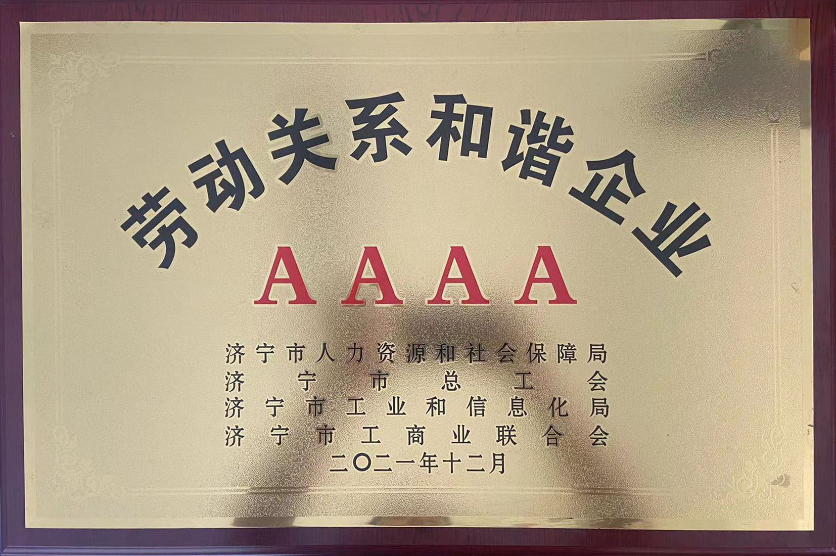 2021年荣获“AAAA级劳动和谐关系企业”